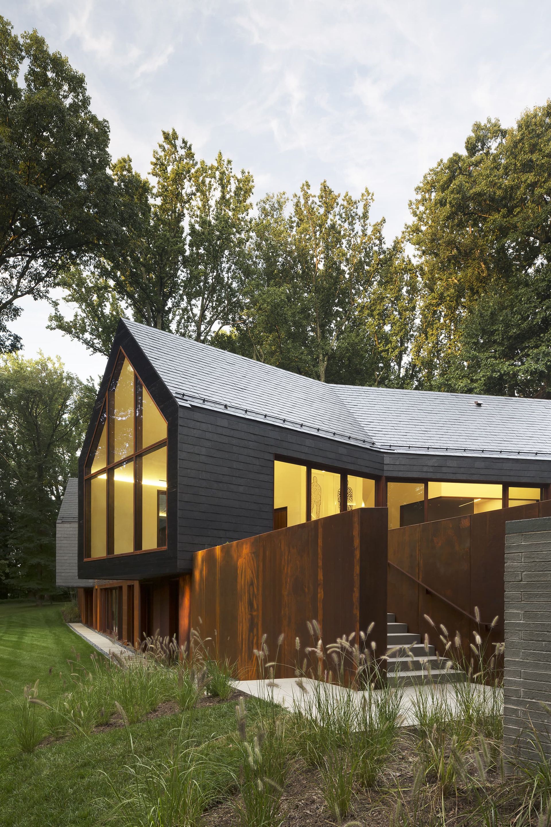 Set on three wooded acres in Greenspring Valley and surrounded by protected Maryland Environmental Trust land, Slate House stands as a quiet meditation on resilience. After a devastating fire claimed the original 1960s ranch home, the opportunity was not simply to rebuild, but to reimagine with care, clarity, and deep respect for the land.